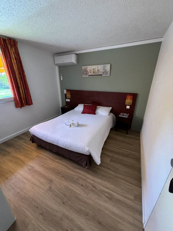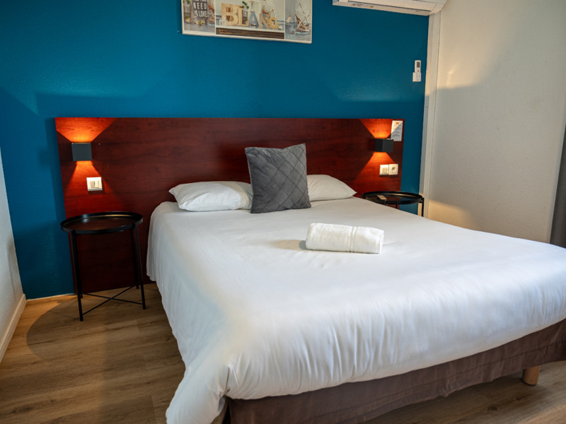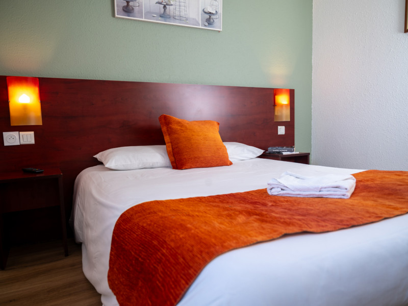 L’hôtel propose 50 chambres climatisées (chambre standard ou supérieure, triple, familiale), adaptées aux séjours professionnels, week-ends en couple ou voyages en groupe. Sur place, vous pourrez profiter d'un restaurant, d'un parking privé gratuit et sécurisé accessible aux voitures et autocars, ainsi que de deux bornes de recharge de 22 kW pour les véhicules électriques.