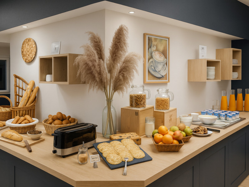 Le petit-déjeuner est proposé en semaine de 7h00 à 9h30 et le week-end de 7h30 à 10h00. Il n'est pas inclus dans le prix de la chambre :