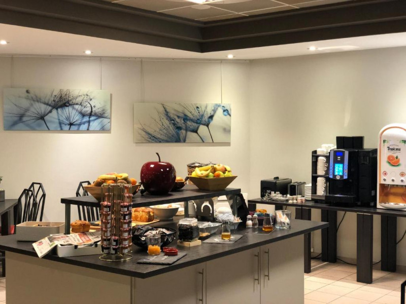 Petit-déjeuner continental servi en buffet, non inclus dans le prix de la chambre : 14 euros par personne. Il est servi en salle de de 6h45 à 9h30.