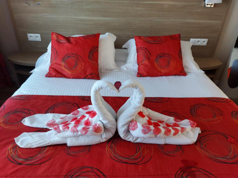 Profitez de services pensés pour votre confort : bar, parking privé gratuit, espaces extérieurs, petit-déjeuner, Wi‑Fi illimité et service de location de vélo. L'espace bien‑être (avec supplément, réservé aux adultes) comprend un spa avec sauna, hammam et jacuzzi. Les chambres, lumineuses et fonctionnelles, offrent tout le nécessaire pour un séjour reposant : literie confortable, salle de bain privative, rangements pratiques et ambiance chaleureuse.