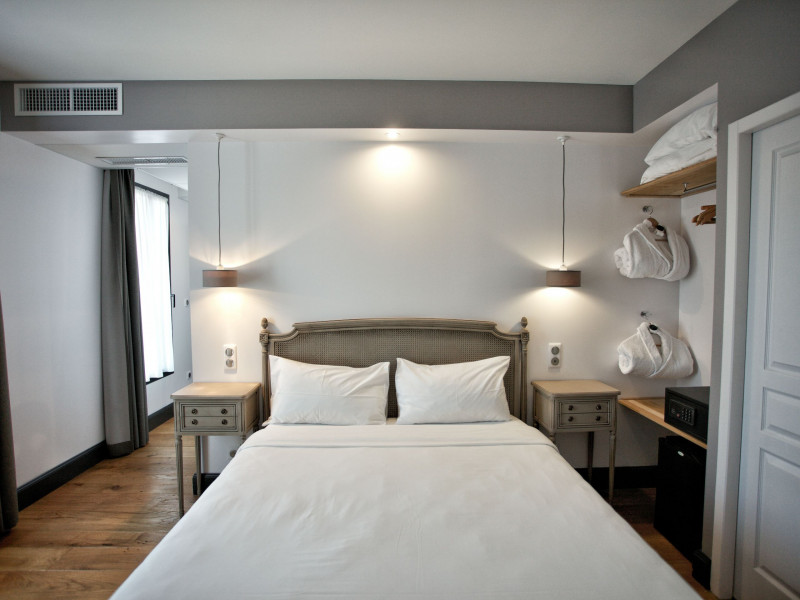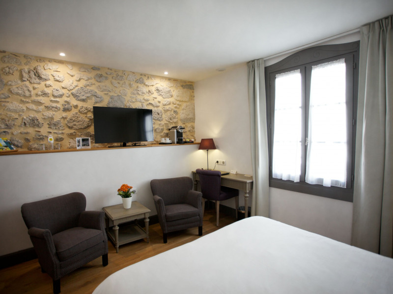 L'hôtel Henri IV vous propose 17 chambres climatisées, entièrement rénovées et redécorées dans un style moderne et épuré. Chaque chambre dispose d'une salle de bain privative avec douche ou baignoire, toilettes et sèche-cheveux, chaussons, serviettes et produits d'accueil, d'un plateau d'accueil, d'un coffre-fort, d'une télévision LCD avec Canal+, chaînes cinéma et chaînes étrangères (satellite), d'un accès Internet Wi-Fi gratuit et de double vitrage.