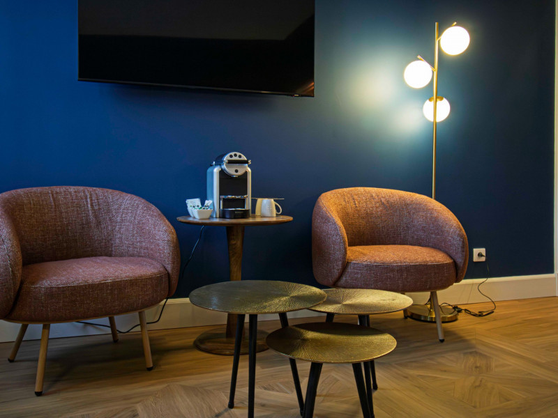 - Chambre Premium : Les chambres Premium, d'environ 30 m², sont spacieuses et présentent une décoration élégante et raffinée. Vous dormirez paisiblement dans un lit king-size (180 x 200 cm) avec une couette. Coin salon, machine Nespresso avec café et thé. Votre chambre comprend également une salle de bains avec douche et toilettes séparées.