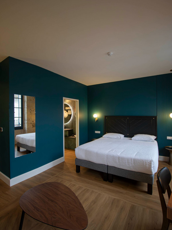 - Chambre Standard : Les chambres standards offrent une superficie entre 11 et 12 m². Elles sont idéales pour une personne seule ou un couple en week-end ou court séjour dans le Pays d'Albret. 1 lit double (140*190 cm) pour 2 personnes.