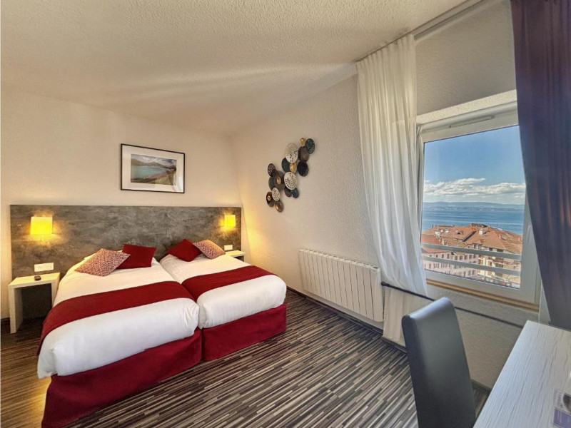 L'Hotel de France Contact Hotel Évian dispose de 38 chambres de charme, dont des chambres communicantes avec vue sur le lac, sur la rue piétonne ou sur le jardin, pouvant accueillir de une à quatre personnes. Toutes les chambres ont été rénovées et offrent un décor contemporain et chaleureux. Au fil des étages, prenez le temps de découvrir l’histoire de la célèbre ville d’eau. L'hôtel ne dispose pas de chambre accessible PMR.