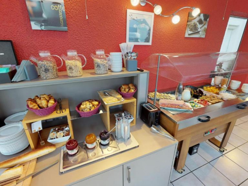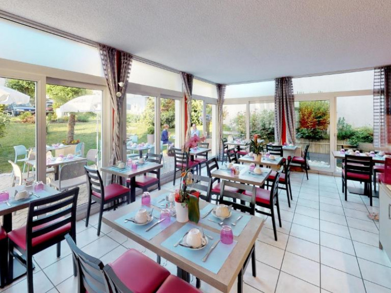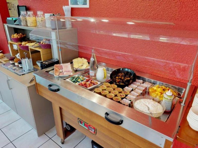 Le petit-déjeuner buffet n'est pas inclus dans le prix de la chambre : 13 euros par personne / Petit-déjeuner pour les enfants de moins de 6 ans : 6 euros. Le petit-déjeuner comprend des boissons chaudes, des jus de fruits, une salade de fruits frais, des viennoiseries, des crêpes, des yaourts, de la charcuterie et du fromage. Votre petit-déjeuner buffet se savoure l’été dans le jardin arboré de l’hôtel, et l’hiver au sein d’une lumineuse véranda. Service de 7h00 à 9h30.