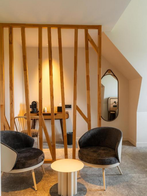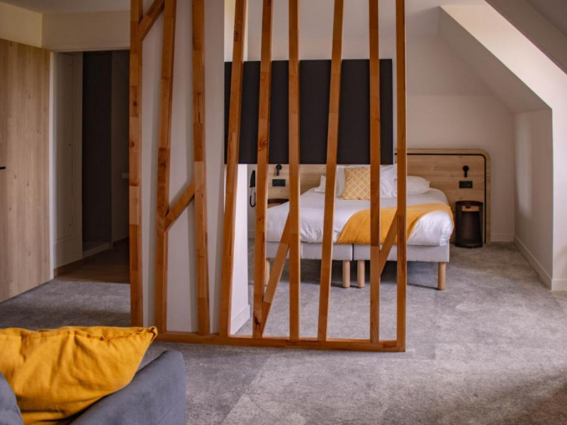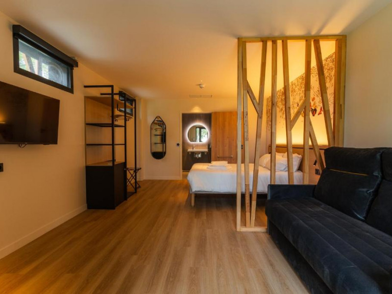 - Suite : 32 m², situées au 2ème étage, avec un espace salon et un lit queen size.