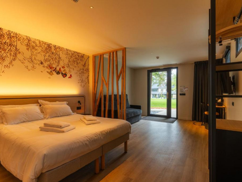 - Chambre King : 45 m², deux chambres, deux lits queen size, chambres situées dans l'annexe de l'hôtel, au cœur du parc.