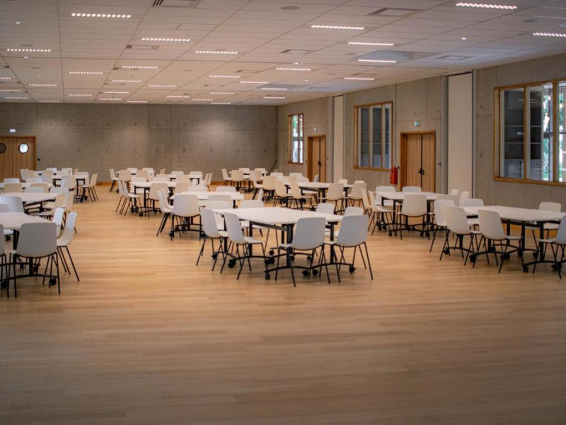 Séminaires et événements: 5 espaces allant de 30 à 400 m² pour séminaires, conférences et mariages. Matériel audiovisuel disponible. Service traiteur pour événements. Salon Evelyne : 30 m² / Les salles Alice, Rose, Raphaël et Isaïa (100 m² chacune) peuvent être réunies grâce à des cloisons amovibles pour former un espace de 100, 200, 300 ou 400 m², le tout sur un parquet massif.