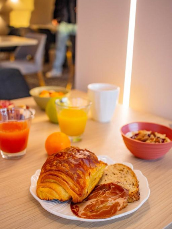 Le petit-déjeuner buffet n'est pas inclus dans le prix de la chambre : 16,90 EUR par personne ou 9,50 EUR par enfant (-12 ans). Le petit-déjeuner est servi en salle de 6h30 à 10h00 ou en chambre de 6h00 à 11h00 (sans supplément).