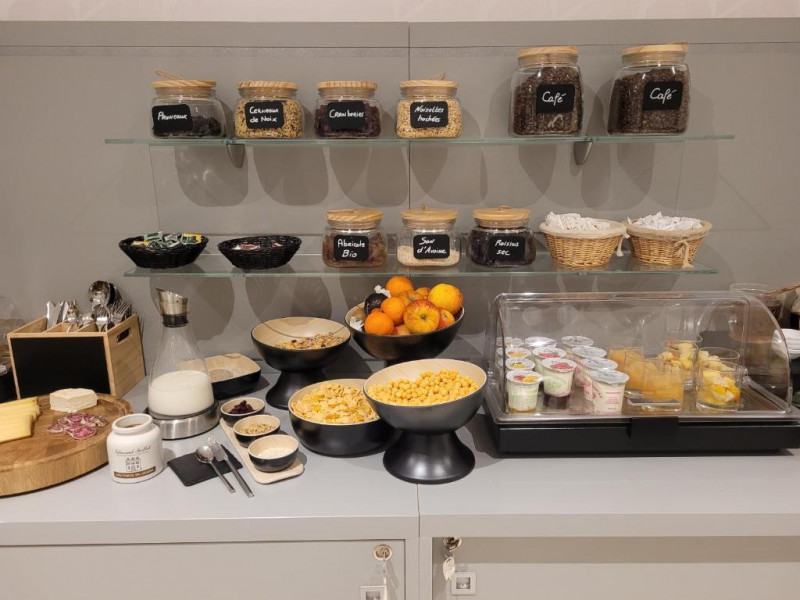 Le petit-déjeuner « terroir » est servi sous forme de buffet. Viennoiseries, gâteaux, céréales et pains divers accompagnent fromages et charcuterie locale. Aux beaux jours, si vous le souhaitez, vous pourrez profiter de la douceur estivale agréablement installé sur la terrasse. Service du petit-déjeuner : 7h à 10h du lundi au vendredi et 8h à 10h samedi et dimanche et jours fériés.