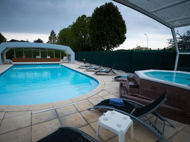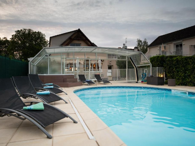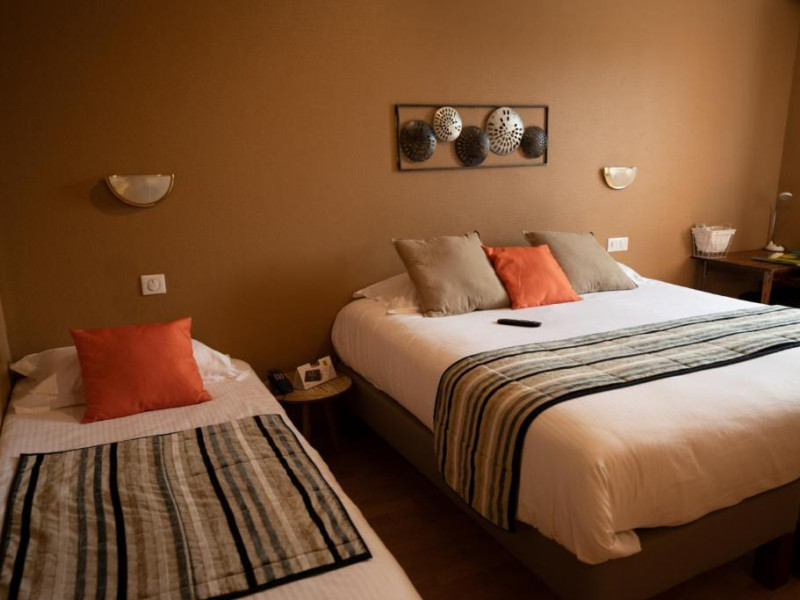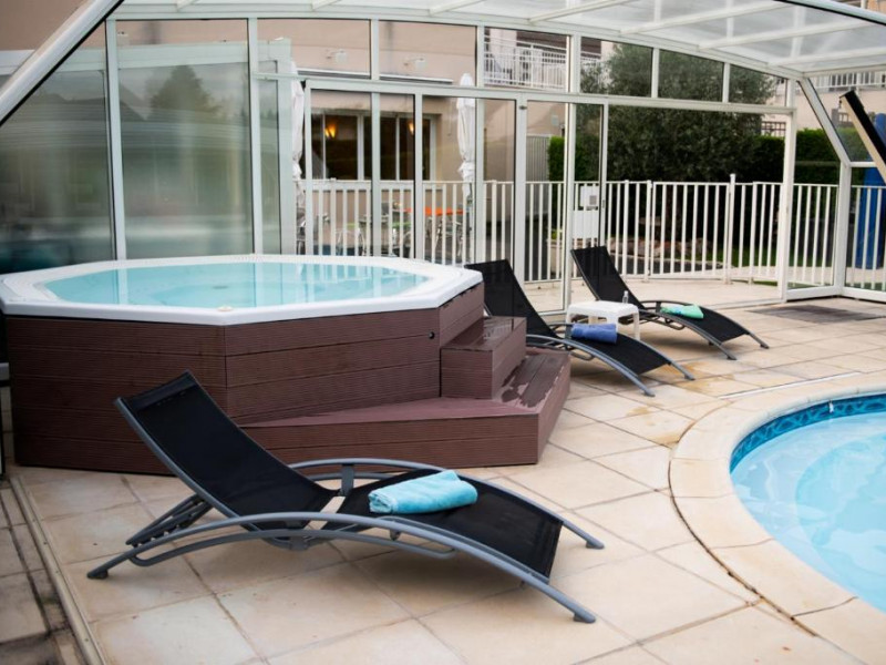 Pendant votre séjour, plongez dans notre grande piscine extérieure couverte et chauffée (fermée en hiver) puis accordez-vous un moment de détente dans notre jacuzzi. Après le bain, installez-vous sur la terrasse de l'hôtel ou sur celle de votre chambre. L’établissement dispose également d’un restaurant proposant une cuisine raffinée inspirée du terroir, ainsi que d’un petit-déjeuner complet servi dans une salle lumineuse. Un parking privé équipé de bornes de recharge électrique est à la disposition des voyageurs motorisés.