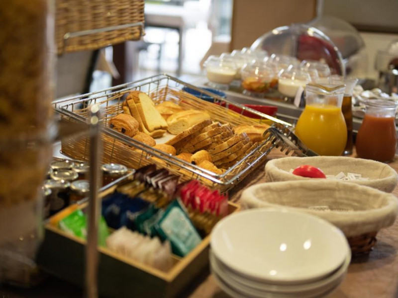 Le petit-déjeuner buffet est ouvert de 7h30 à 10h00 et comprend : viennoiseries, pain du jour, différents pains, pâtisserie maison, yaourt, fruits frais, confitures maison, salé froids chaud, salade de fruits, assortiments de fruits sec, boissons chaudes boissons fraiches ainsi que jus d'orange pressé. Petit-déjeuner en chambre de 8h00 à 10h00 (supplément 5,00 euros). Petit-déjeuner adulte : 16 euros / Petit-déjeuner enfant de 2 à 8 ans : 12 euros.