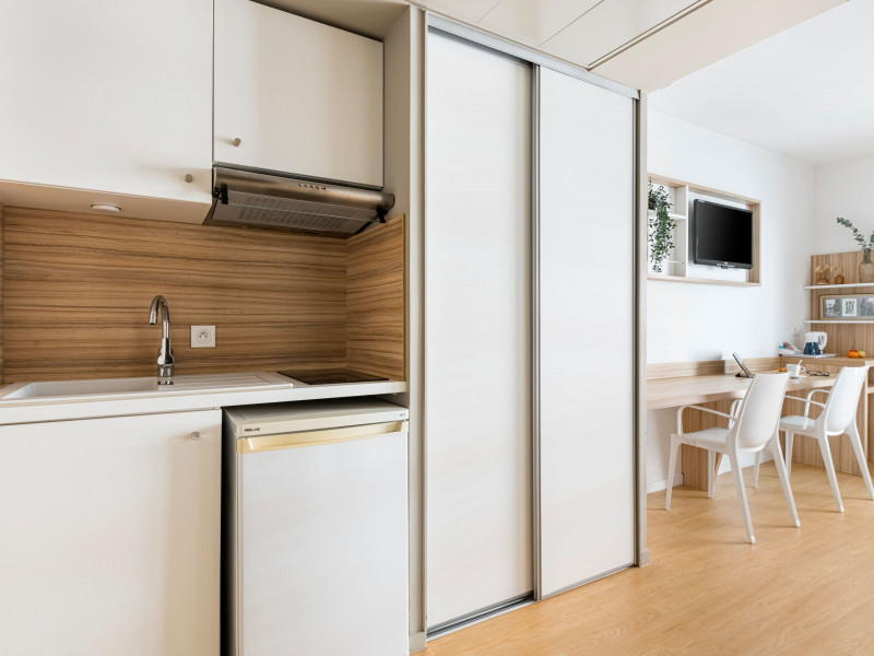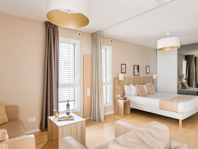 Votre suite sera dotée d'une cuisine, d'un espace bureau, rangements, télévision écran plat, coin salon et détente, du Wifi, d'une salle de bain avec radio.... Vous pouvez également choisir de vous faire livrer le petit-déjeuner et des repas dans votre suite.
