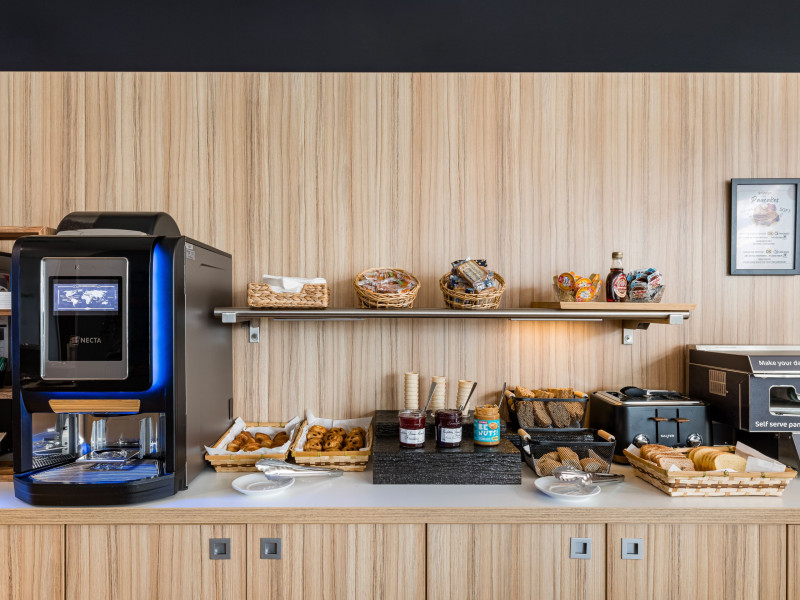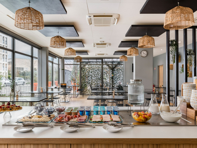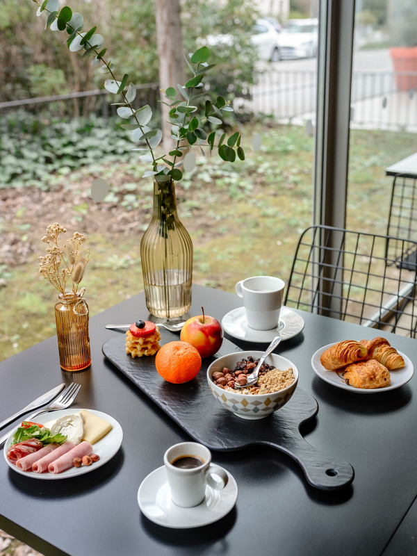 Le petit-déjeuner buffet chaud / froid à volonté n'est pas inclus dans le prix de la chambre : 14 EUR par personne. Il est servi en salle de 6h30 - 10h30 en semaine, de 7h30 à 11h les weekends et jours fériés.