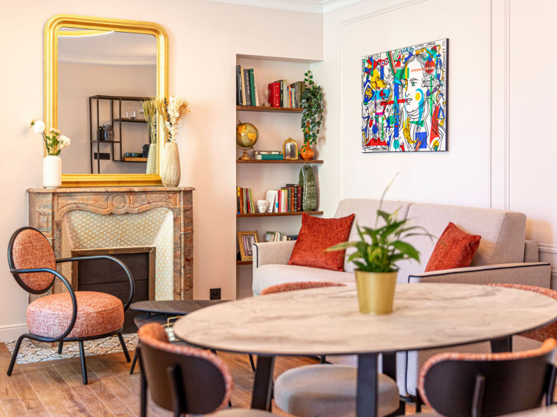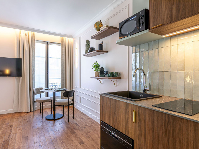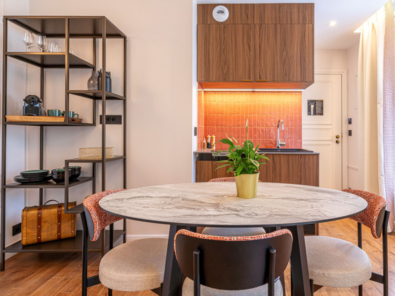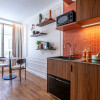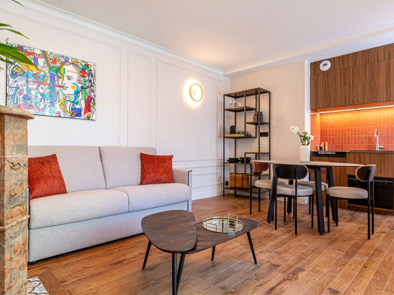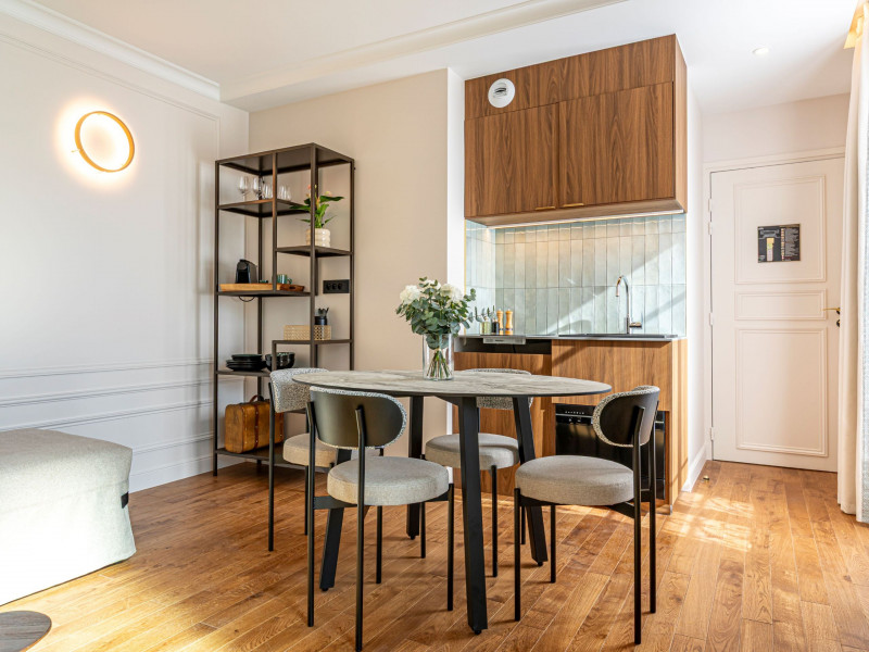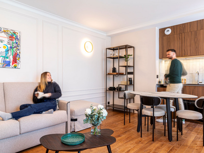 - Appartement pour 4 personnes : Idéal pour accueillir jusqu’à 4 personnes, cet appartement de 35 m² offre une vue sur cour. Il se compose d'une chambre avec un lit double (180 cm) modulable en lits jumeaux selon vos préférences, d'un salon avec un canapé-lit de 140 cm, d'un coin repas, d'une kitchenette et salle de bains avec douche.