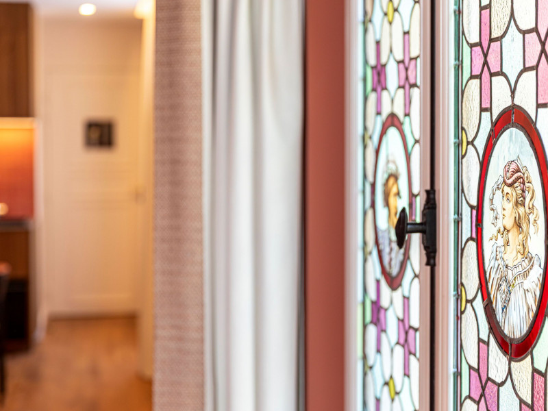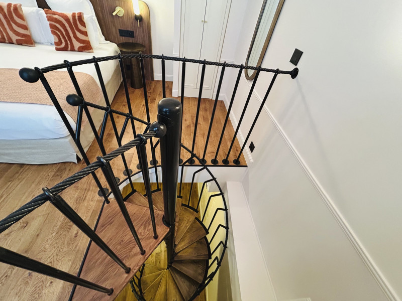 - Studio atelier : Le Studio Atelier est un charmant souplex de 28 m² conçu pour deux personnes. Au rez-de-chaussée, côté rue, se trouve une chambre équipée d’un lit double de 160 cm, d’une télévision et d’un placard. Un escalier en colimaçon de style atelier mène au niveau inférieur, où vous découvrirez une kitchenette, un coin repas ainsi qu’une salle de bains avec baignoire spa et douche.