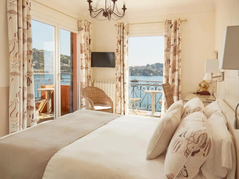 - Chambre classique : 15 m² - 4ème ou 5ème étage - chambres donnant sur la place Amélie Pollonais - vue sur la citadelle et la rade de Villefranche-sur-Mer depuis le balcon.