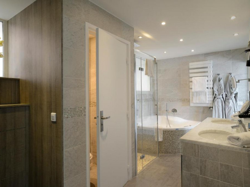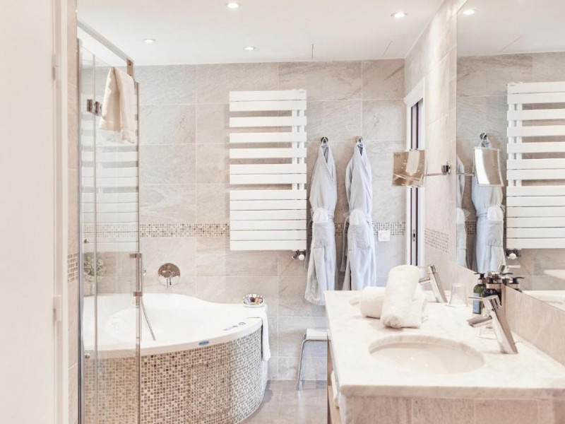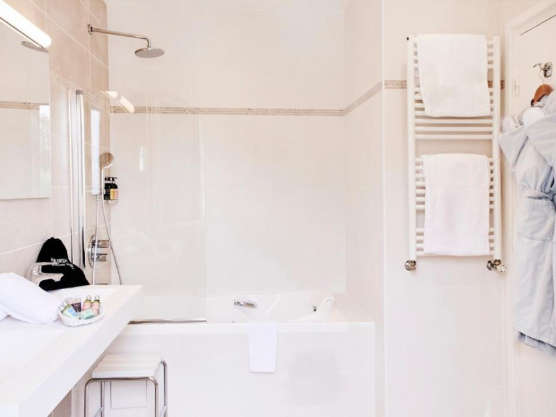 - Suite Junior Cinéma : 42 m² - 1er étage - baignoire balnéo et douche avec ciel de pluie - lit king size + canapé-lit simple.