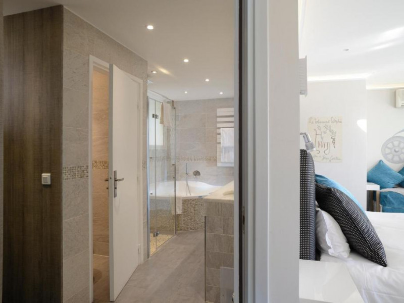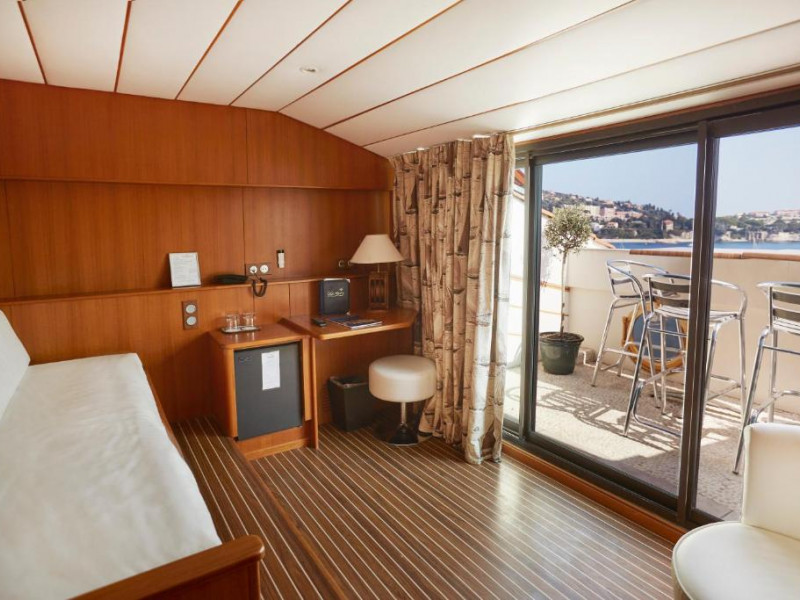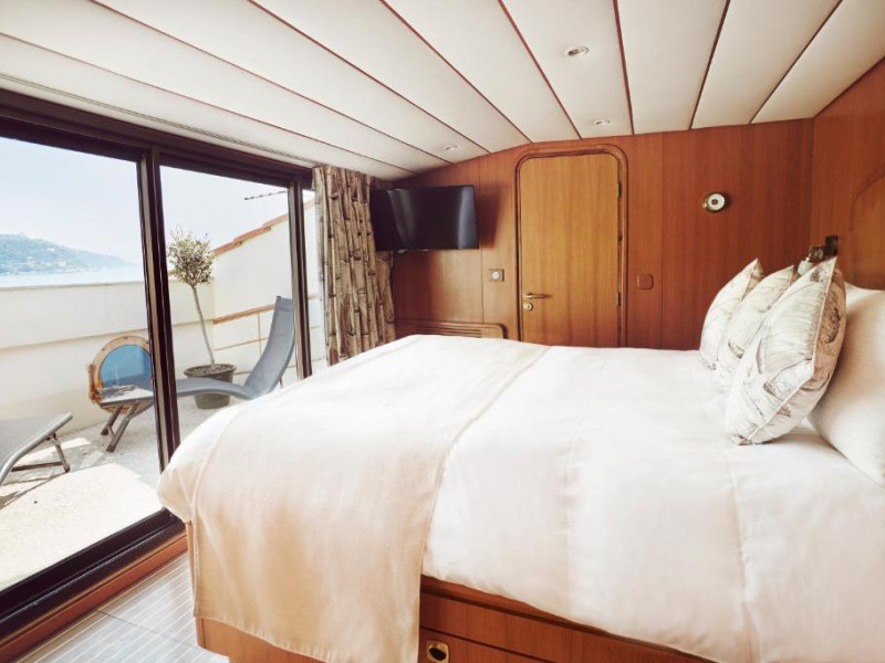 - Suite Cabine : 22 m² - 6e/dernier étage - lit king size (chambre) + canapé-lit simple (salon). Accessible par ascenseur jusqu'au 5e étage, puis par les escaliers (18 marches). 2 terrasses.